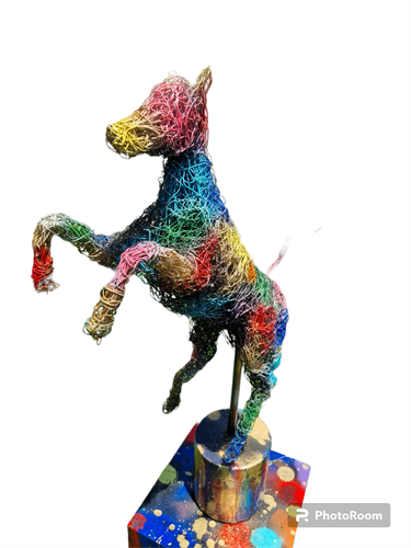 פסל עשוי מחוטי ברזל, פסל של סוס, פסל עשוי מחוטים, סוס מחוטי ברזל, סוס צבעוני מחוטי ברזל, סוס ברזל למכירה,